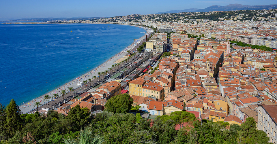 ニース・コート・ダジュール国際空港からバスで約30分の場所にある港町「ニース」は、高級リゾートの華やかさと下町の庶民的な雰囲気の両方を兼ね備えた街です。地中海の温暖な気候により夏でも27℃以下の涼しさが保たれ、避暑地としても人気があります。毎年2月には、踊り子や巨大な山車が街を練り歩く「ニースのカーニバル」が開催されます。中でも、着飾った女性たちが山車の上から約6万本もの花を投げる「花合戦」の華やかさは見ものです。おすすめのお土産は、ひよこ豆の粉とオリーブオイルを混ぜてクレープ状に焼いた名物「ラ・ソッカ」です。