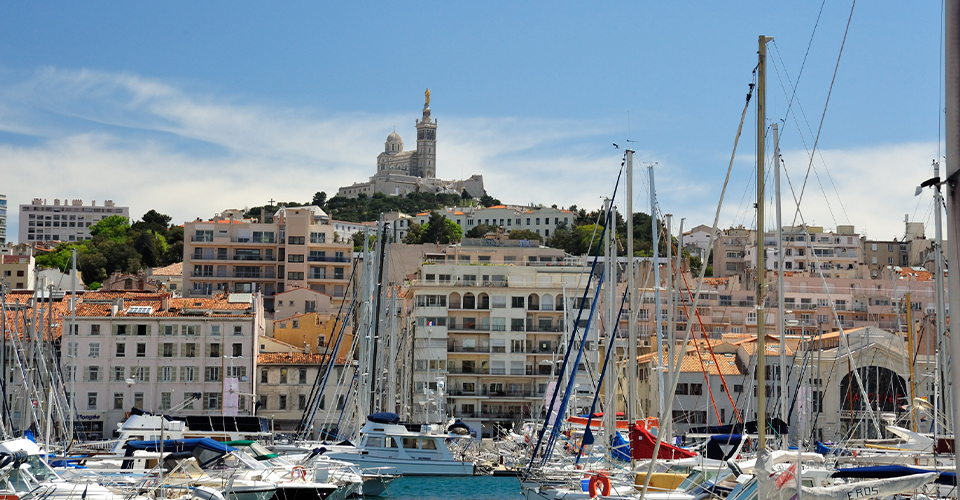 シャルル・ド・ゴール空港から飛行機で約1時間半の場所にある「マルセイユ」は、古代ギリシア時代に生まれた歴史情緒あふれる街です。見どころは、1864年に建てられたロマネスク様式の聖堂「ノートルダム・ド・ラ・ギャルド・バジリカ聖堂」です。高さ41mの鐘楼に立つ黄金のマリア像は「ラ・ボンヌ・メール(優しい聖母様)」と呼ばれ、街のシンボルとして親しまれています。おすすめのお土産は、旧フランス王室御用達の「マルセイユ石けん」。プロヴァンス地方の良質な天然オリーブ油とパーム油を原料にしており、赤ちゃんの肌にも使用できます。