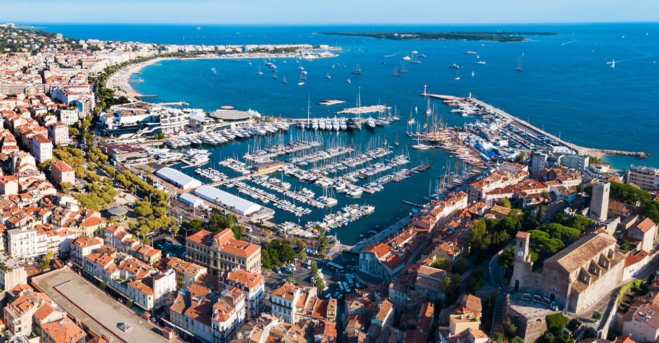ニース・コート・ダジュール国際空港からバスで約1時間半の場所にある「カンヌ」は、カンヌ国際映画祭の開催地として有名なリゾート地です。映画祭の舞台「パレ・デ・フェスティバル・エ・デ・コングレ」では、映画スターが歩いたレッドカーペットで記念撮影ができます。建物前の通路には、スターのブロンズ手形が敷き詰められており、映画好きにはたまらないスポットです。女性へのお土産には、「アンティーブ通り」にあるシューズブランド「レペット」のバレエシューズがおすすめ。履き心地のよさと洗練されたデザインが人気です。