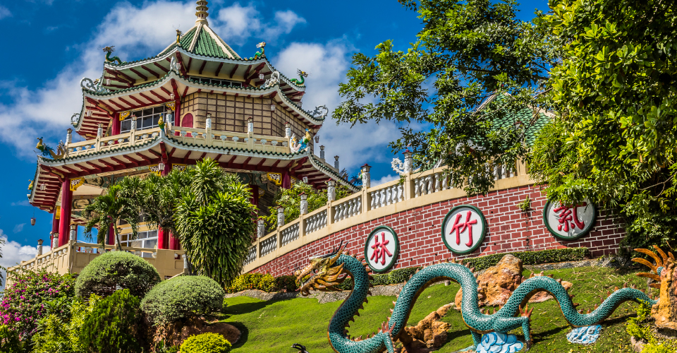 セブ島の高級住宅街・ビバリーヒルズにある、セブシティ観光には外せないスポットのひとつ。1972年に華僑の富豪たちの寄付により建てられました。そのため中国様式で、色鮮やかな赤と緑を基調とし、中には中国の思想家「老子」の教義が祭られています。「七重の塔」や「願いの泉」、本堂や大広間など見どころは多数ありますが、一番のおすすめはセブシティを一望できる最上部からの眺め。思わず写真に収めたくなる美景が楽しめます(撮影対象に制限あり)。