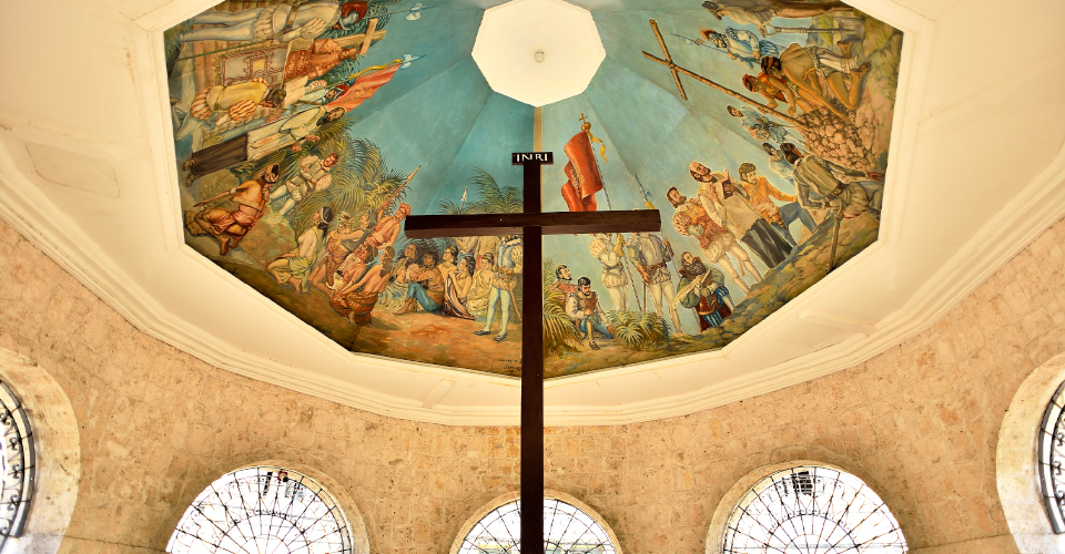 1521年に探検家マゼランがキリスト教布教のために建てた、巨大な木製の十字架「マゼラン・クロス」。破片が万病に効くと信じられていたため、十字架を削り取る人が後を絶たず、1984年にサントニーニョ教会の隣に「八角堂」を建立、保護されました。現在の十字架はレプリカですが、削り取られないよう木製のカバーが付けられています。十字架の周辺では、恋愛・金運・成功など願い事によって色の違うロウソクが販売されています。訪れた際には、ぜひ「願い事」をしてみてください。