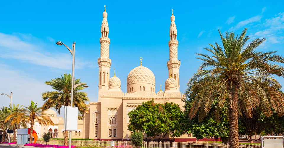 ドバイで最も美しいといわれるモスク。真っ白いドームと2本のミナレットをもつその姿は静謐で凛とした佇まいです。ドバイのモスクの中で唯一異教徒を受け入れており、決まった曜日のみですがツアー形式で内部が見学できます。その際に気を付けたいのが服装。なるべく肌の露出の少ない服装で行くのがマナーです。男女とも長袖、長ズボンで、女性は髪を隠すためのスカーフも忘れないようにしてください(もし忘れた場合は借りることもできます)。ツアーは約1時間で礼拝の方法やイスラム教について詳しく説明してくれます。