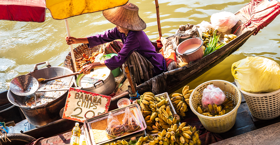 数あるタイの水上マーケットの中でも、一番の人気がダムヌン・サドゥアックです。バンコクからは少し離れていますが、規模が大きいため人やお店が多く活気があります。おすすめは、より多くの船でにぎわう8~10時頃。水上マーケットならではの風情がたっぷり堪能できます。水上マーケットに行く際には、荷物は小さめにすることをおすすめします。人が多く行き交う場所なため、荷物が多いとひったくりなどのトラブルに巻き込まれてしまうことも。身軽にして、ローカルフードや土産物のお買い物を楽しみましょう!