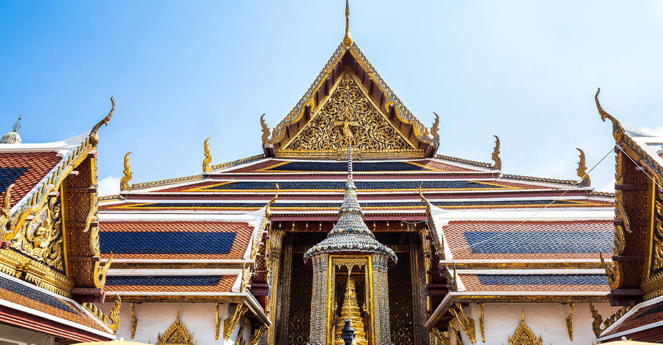 エメラルド寺院の名で知られるワット・プラ・ケオは、1782年にラーマ1世がチャクリー王朝を開き、王都をバンコクに移した際に建てられた寺院です。王宮施設内に王室専用の守護寺院として建てられ、建物内にはエメラルドに輝く翡翠の仏陀像が安置されています。タイで最も美しい寺院と言われているだけあって、その姿は豪華絢爛。金箔や色ガラスのモザイクで装飾された、美しく煌びやかな外装と内装に圧倒されてしまいます。寺院内にある壁画は「ラーマヤナ神話」の物語が題材にされており、寺院を囲む回廊のすべてに描かれています。神話のストーリーを予習してから訪ねれば、ワンランク上の楽しみ方ができますね。