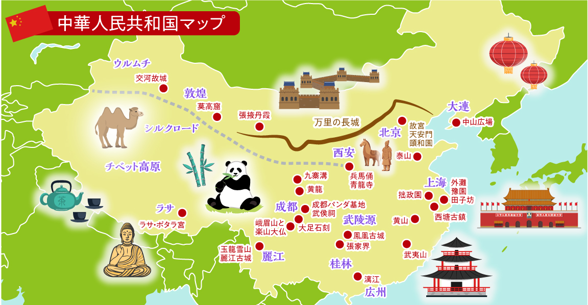 広大な国土をもつ中国は、古代から近現代まで数千年にわたる歴史を持つ国です。地域によって風土や文化、風景が異なり、世界遺産も数多くあります。そこで今回は中国の魅力を堪能できるおすすめスポットをご紹介します。万里の長城で知られる北京や、西洋と東洋文化が融合した上海などの都市をはじめ、武陵源・桂林・黄龍・九寨溝の大自然、シルクロード、チベットなど全土に点在する名所を集めてみました。