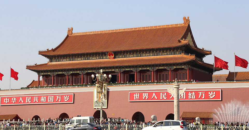 北京市の中心に位置する天安門は、明・清朝皇帝の居城であった故宮(紫禁城)の正門です。毛沢東が中華人民共和国の建国宣言を行った場所としても知られ、毛沢東の肖像画が掲げられています。近代中国の始まりを象徴する建物として、夜間には天安門や周辺の建物一帯がライトアップされ、昼とはまったく違った景観になります。天安門から道路を隔てたところにある天安門広場も見どころです。大きな国旗掲揚台があり、早朝は国旗を揚げ、夕方は国旗を降ろすセレモニーが毎日行われます。