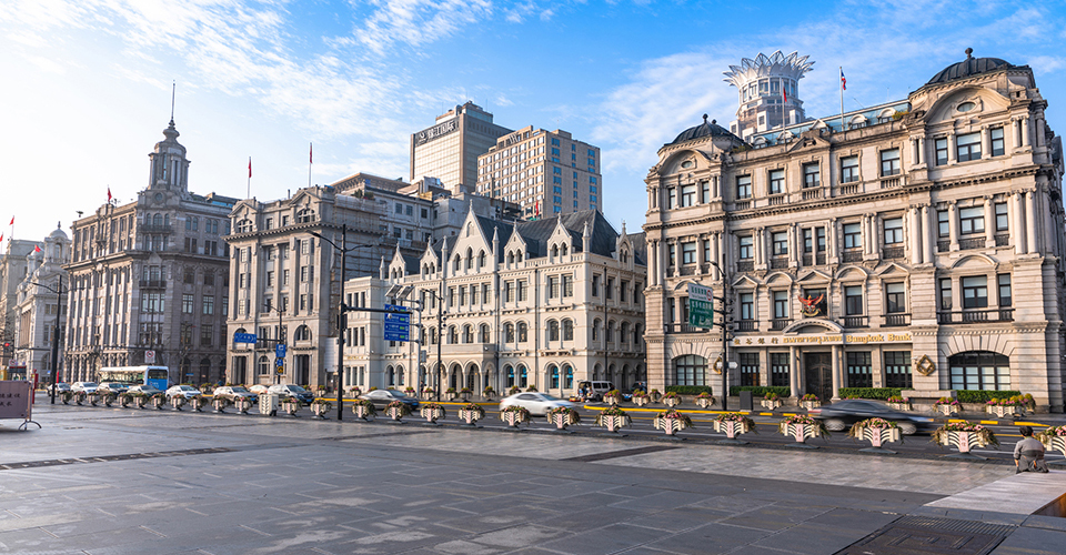 上海のシンボル外灘は、黄浦江沿いに広がる人気のスポットです。かつて外国人居留地として栄えた西洋建築が建ち並び、異国情緒あふれる景観が特徴です。全長約1kmの遊歩道を散策しながら、歴史的建造物を鑑賞したり、黄浦江を行き交う船を眺めたりするのもおすすめです。夜にはライトアップされ、ロマンチックな夜景が広がり、昼間とは異なる上海の姿を楽しめます。対岸の浦東地区にそびえ立つ高層ビル群とのコントラストは必見です。