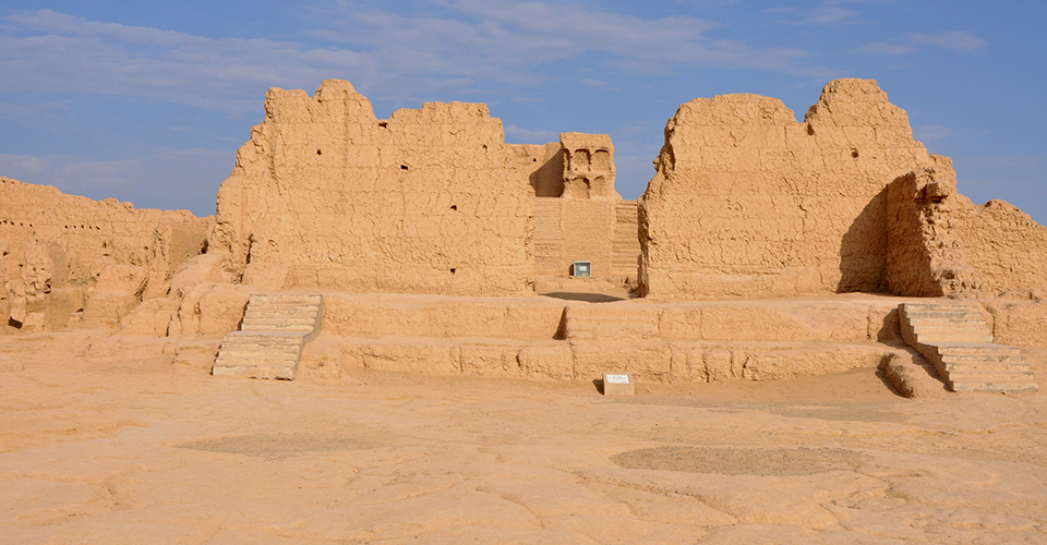 新疆ウイグル自治区トルファン市中心部から西へ約10kmの位置にある古代遺跡です。2000~2300年前に築かれました。この地は東西に二つの河が流れる天然の要塞のような台地に、政治や軍事、経済、文化を発展させた車師国の人々が住んでいました。すべての建築物は天然の土を掘って作られており、官府エリアや寺院エリアなどに分かれた配置になっています。寺院エリアでは100基以上あるといわれる仏塔が整然と並び、古代のロマンを漂わせています。