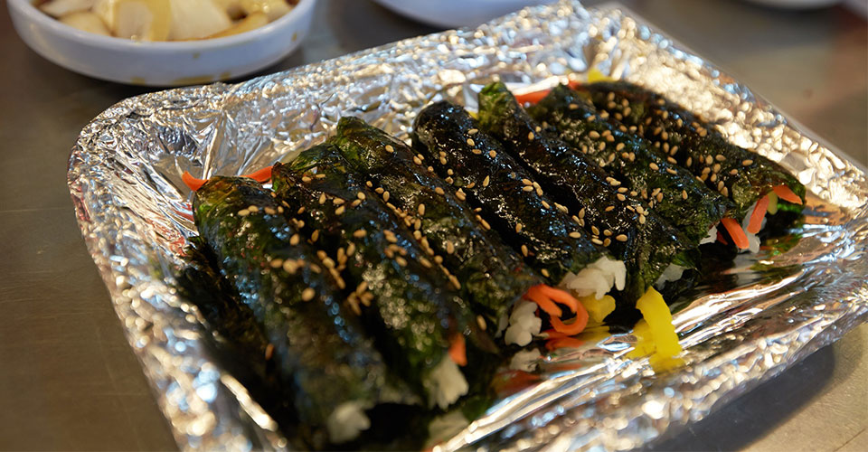 キムパブともいい、お写真の見た通り、韓国版海苔巻きです。日本の海苔巻きは酢飯で巻くのが主流ですが、キンパは、米飯と生魚以外の様々な具で巻きます。日本の海苔巻きとの違いは、ごま油で味付けをすることです。韓国では、1人前200円~500円とお手頃な価格でお召し上がり頂くことが出来ます♪おうちでも材料があれば簡単にキンパを作ることが出来るので、試してみてくださいね!