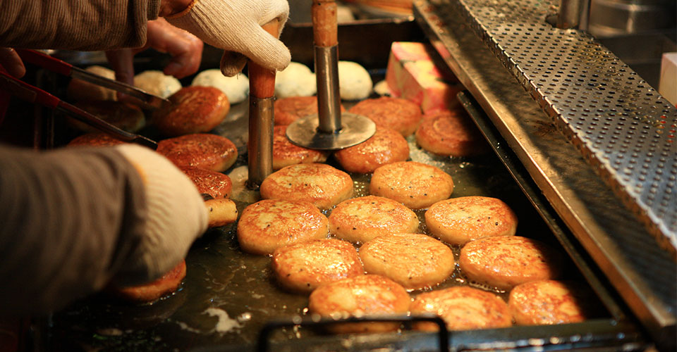 ホットクは韓国定番お菓子の1つです。韓国の屋台などで買うことができ、1つ100円~200円程のため、安価で庶民的なお菓子としても気軽に食べることのできる韓国グルメです♪ホットクは小麦粉や白玉粉を使った生地に「蜜」を包んで、焼きます。この中身の定番は、蜂蜜ですが、他にもナッツやチーズ、お惣菜が入っているものもあるようです。ホットクの生地には、白玉粉が入っているので、もちもち食感がたまりません♪食べたときに熱々の中身がこぼれだす、絶品スイーツです!