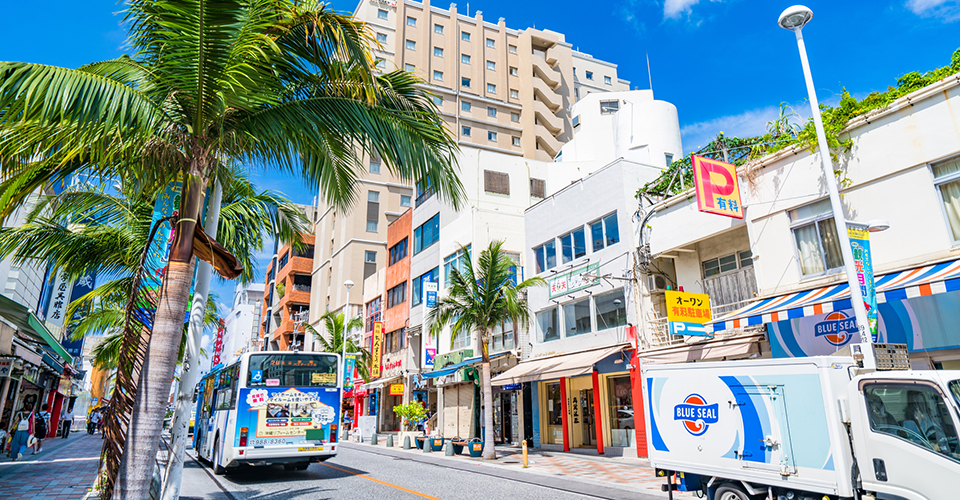 那覇市の県庁北口交差点から安里三叉路にかけての約1.6km。国際通りは、那覇最大の繁華街です。戦後、米軍の物資集積所があった新県道沿いの土地に「アーニー・パイル国際劇場」という映画館が開館し、この映画館にちなんで「国際通り」と呼ばれるようになりました。「食べる」「買う」「泊まる」が揃う、観光客にとっても地元の方々にとっても便利なスポットです。