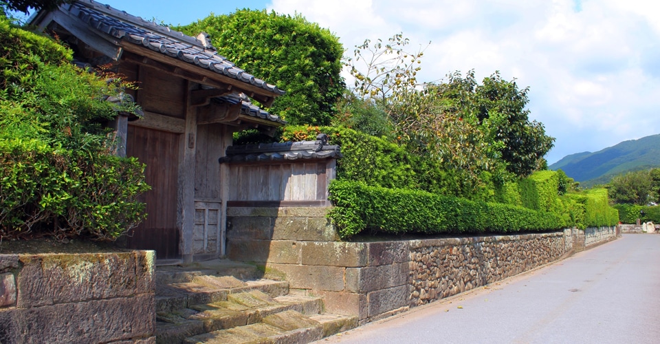 江戸時代、薩摩藩は「外城」と呼ばれる102の地区に領地を分け、それぞれに武家集落を作りました。鹿児島に武士団を結集させることなく分散して統治にあたらせるためです。その中のひとつがこの知覧武家屋敷群で、地区内にある7つの庭園は国の名勝に指定されるほどの見応えです。庭園は、鹿児島空港からは車で約1時間半、鹿児島中央駅からは車で約1時間のところにあります。