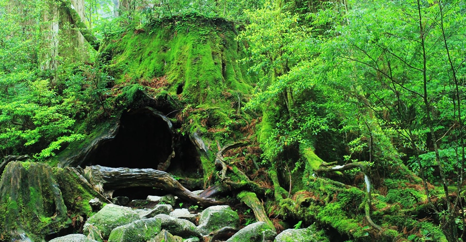 国内では他にあまり見ることができない独自の生態系や景観。これこそが屋久島の一番の魅力で、世界自然遺産に登録された理由でもあります。昭和39年の国立公園指定以前からも、 ここを訪れた植物、動物学者からは「類を見ない島」「人類の至宝」と評価されてきました。近年はアニメの舞台のモデルとして、その圧倒的な世界観が注目されています。比較的雨が少ない3~5月と10~11月が好期といえますが、しっかりとした雨具は常に用意してください。