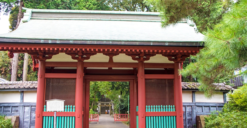 「江戸彫り」といわれる精巧な彫刻が施された社殿は必見。江戸後期の川越城主松平斉典が寄進し建立されもので、明治に来日し、大森貝塚を発見したモースもその緻密さに驚いたといいます。また、朱色が鮮やかな高さ15mの大鳥居の中央に記された文字は、勝海舟の手によるものです。またこちらは夫婦の神様を祀っていることから「縁結びの神」として信仰されているので、ご夫婦やカップルの方にもオススメです。