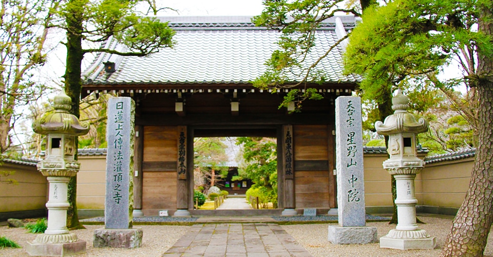 落ち着きのある佇まいが趣を感じさせる寺院で、正式には「天台宗別格本山中院」といいます。鎌倉時代の終わり頃に、無量寿寺から分かれたとされ、喜多院に天海僧正が来往するまでは、この地の中心的な寺院であったといわれています。中院はこれまでに戦や大火で何度もの焼失、再建を繰り返してきましたが、2012(平成24)年に本来の姿である、本堂・釈迦堂・薬師堂の三堂が揃いました。