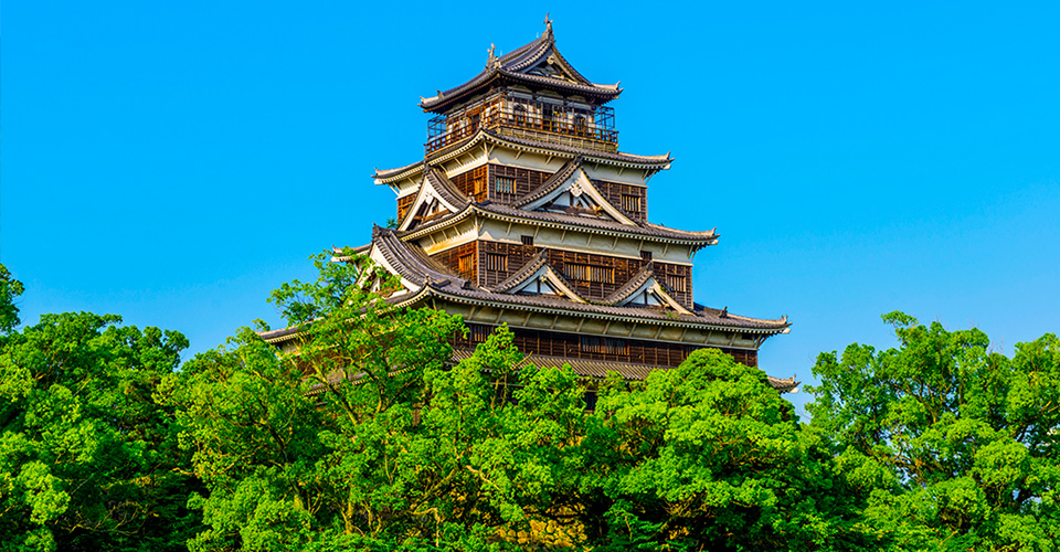 1959年、毛利輝元の命によって築城が始まった広島城。「鯉城(りじょう)」の名でも親しまれるこの平城はその後、福島氏、浅野氏を城主として迎え、長きに渡って広島の街を見守ってきました。1945年の原爆投下によって倒壊するも1958年「広島復興大博覧会」の目玉として天守閣が再建され、1989年から二の丸の復元も行われました。現在は戦後復興のシンボルとなっています。