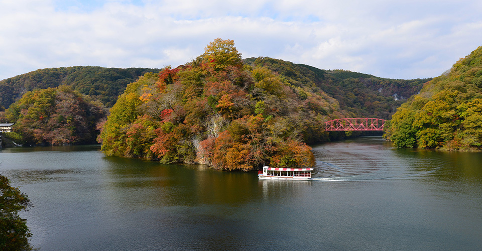 広島県の北東部を流れる帝釈川によって形成された帝釈峡。遊歩道を歩いていくと、自然が作り出した奇岩が数多く見られ、中でも谷に架かる全長約90m、幅約18m、高さ約40mの天然橋「雄橋」は巨大な石灰岩が渓流の浸食によって貫通したもので、見る者を圧倒するスケールです。下流に広がる「神龍湖」は新緑・紅葉のビュースポットとして知られています。周囲を一周する散策コースのほか、遊覧船やカヤックで湖面から愛でる四季折々の自然美もおすすめです。