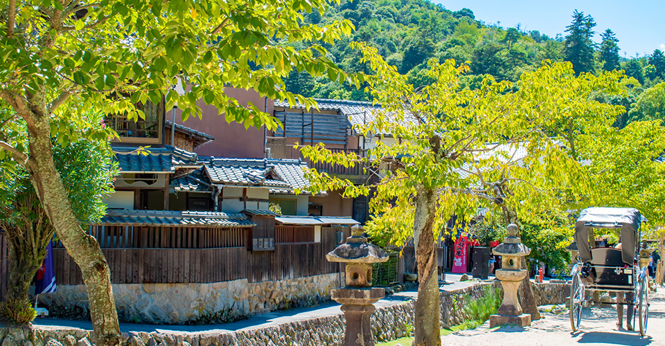 神の島・宮島は嚴島神社以外にも、霊峰・弥山の麓に空海が開基して以来1200年の歴史をもつ鳥羽天皇や豊臣秀吉ゆかりの大聖院や「西の松原」に清盛を祭神として創建された清盛神社など数多くの神社仏閣が点在しています。嚴島神社に続く表参道、伝統的な町家建築の商店などが点在するレトロモダンな町家通り、大聖院へ至る緩やかな坂道・滝小路など、趣ある通りを巡るのも楽しみのひとつ。宮島杓子などの工芸品やアナゴ飯や宮島カキきなどグルメも堪能できます。