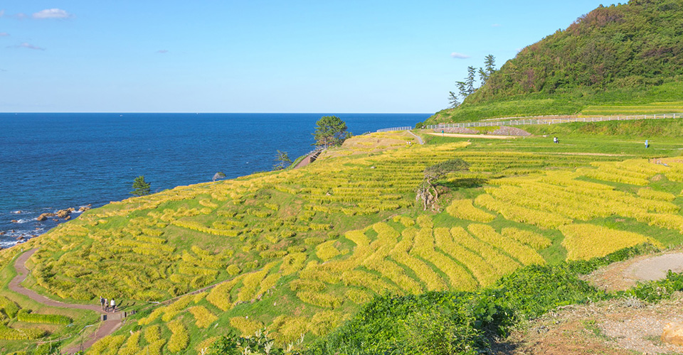 能登半島の北部・輪島市を走る国道249号線と、その北側に広がる日本海の間にある崖地に造成された棚田。日本海へ向かって傾斜を描くように広がるその風景は、夕暮れ時に映える美しさはもとより、古き良きアジア情緒を満喫できるということで、外国人観光客にも大人気です。もっともその本分は、観光目的のアトラクションではなく、あくまで稲作目的の水田。現在でも耕作・保存活動が行われ、毎年稲が収穫されています。