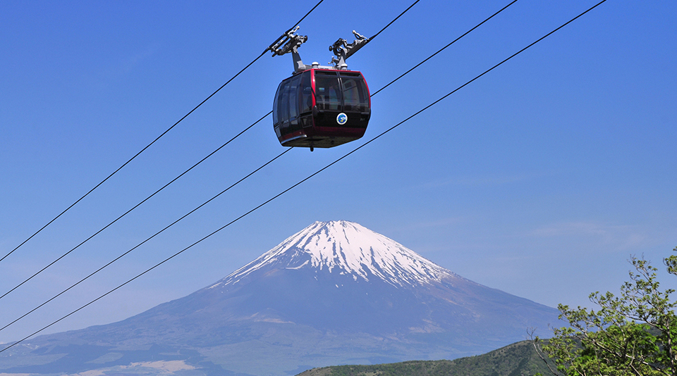 箱根ロープウェイは、大涌谷や芦ノ湖、富士山を空から一望できる全長約4kmのゴンドラ式ロープウェイです。四方がガラス張りの窓で囲われており、「硫黄の煙が立ちのぼる迫力の大涌谷」「四季折々に移り変わる山の色彩」といった景色を楽しめます。各拠点では、名物グルメや土産物を販売。大涌谷くろたまご館で名物の「黒たまご」を食べたり、大涌谷駅食堂で名物のカレーを食べたりできます。