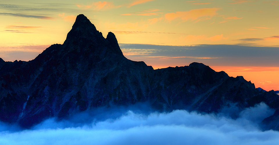 大天井岳から見る残照の槍ヶ岳(イメージ)