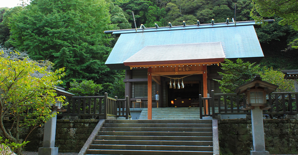 館山駅から車で30分の所に位置し、紀元前660年に創建されたとされる歴史ある神社です。日本のすべての産業創始の神である「天太玉命(あめのふとだまのみこと)」が祀られており、交通安全・開運・厄除・家内安全・商売繁昌などを願う人々が訪れます。日本三大金運神社の1つとして有名なパワースポットでもあり、境内左手の池のほとりにある御神木の槙(マキ)の木が特に有名。御朱印は二の鳥居をくぐると左側にある社務所でいただけます(8:30~17:00)。また3月中旬~4月中旬には、約200本の桜が美しく咲き誇る「桜の名所」としても知られており、鳥居から本殿までの境内をアーチのように覆う桜並木は必見です。