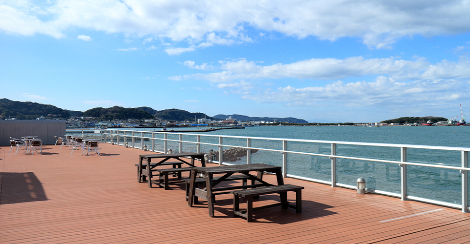 館山駅からすぐの海岸沿いにある「渚の駅 たてやま」。大きな水槽に魚たちがいっぱいの「海辺の広場」、潮風を感じながら館山湾を一望できる「展望デッキ」、国指定文化財も収蔵されている「渚の博物館」、さかなクン(館山ふるさと大使)が開設した「さかなクンギャラリー」など魅力的な施設が豊富です。隣接する「夕日桟橋」は桟橋形式としては日本最長で海岸から500mを有し、たくさんの釣り人が集まる人気スポット。また併設の「館山なぎさ食堂」では、海を視界いっぱいに感じながら食事が楽しめます。海鮮丼やシーフードパスタが人気です。