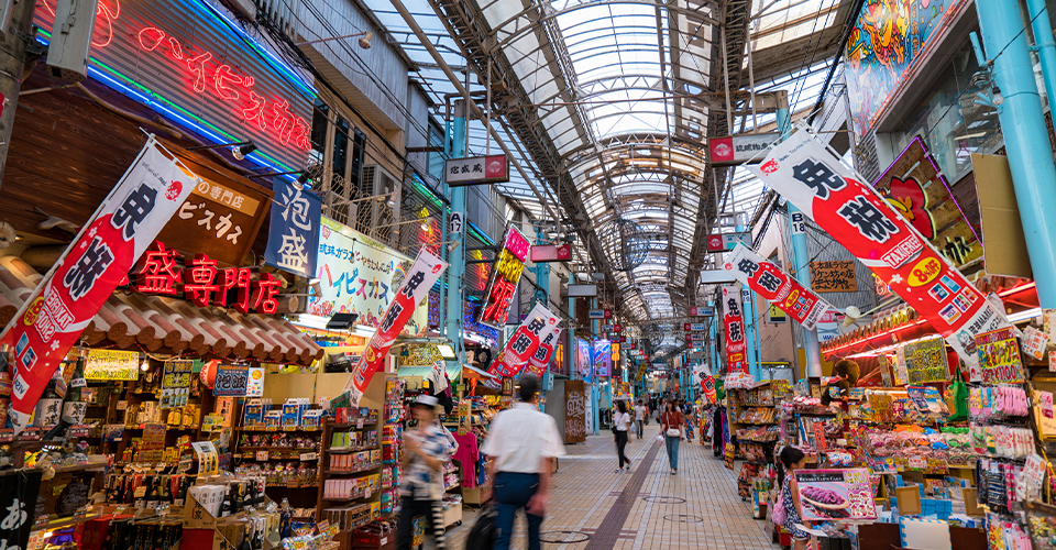 国際通りの先にある「平和通り商店街」はレトロな雰囲気が人気なローカルスポット。アーケードがあるので雨の日でも買い物ができます。通りにはお土産屋さんや衣料店が並び、一日では周り切れないほどお店がたくさん。食べ歩きできるサーターアンダギーの「琉宮」などグルメも楽しめます!一度食べておきたいのが沖縄生まれのファストフード店「JEF」のハンバーガー。「ゴーヤーバーガー」など沖縄らしいメニューがおすすめです。