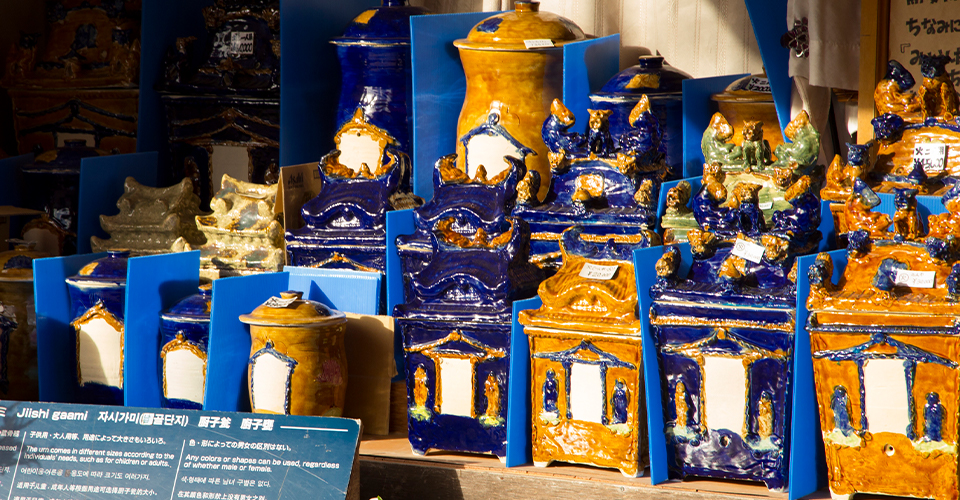 「壺屋やちむん通り」は、沖縄の伝統的な焼き物「壺屋焼」を扱うお店が並ぶ昔ながらの風景が魅力。「やちむん」とは沖縄の方言で焼き物を意味しています。現代的で取り入れやすいやちむんも多く、若い方に人気です。シーサーや器づくりなども体験でき、思い出作りにもおすすめ。壺屋焼の器でコーヒーを味わえる「陶器と喫茶 南窯」など、休憩できるカフェもありますよ。秋に開催される「壺屋やちむん通り祭り」期間中は、やちむんが通常より安く買えるほか、エイサー踊りなども見られます!