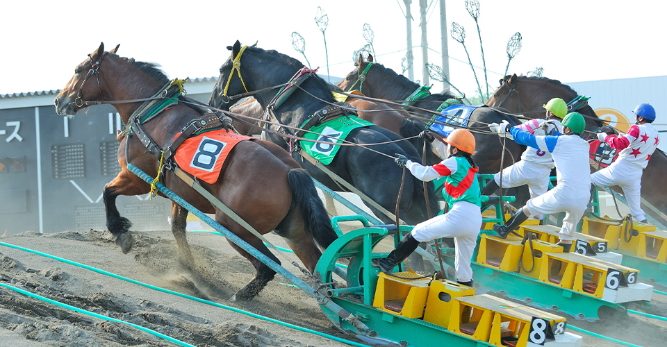 「ばんえい十勝」の名称で、世界で唯一ばんえい競馬の通年開催を行う競馬場です。ばんえい競馬とは、体重1トンもの「ばん馬」が重りを乗せた鉄ソリを引いて力とスピードを競う、ひき馬競馬のこと。併設された「ふれあい動物園」では、小動物にエサをあげたり、ひき馬乗馬体験をしたり、家族連れで賑わっています。「馬の資料館」では、十勝の馬に関する歴史資料が集められています。「とかちむら」は、食の宝庫・十勝が誇る食材やレストランが集まる人気のグルメスポット。新鮮野菜や乳製品、ぶた丼がおすすめです。花火大会をはじめ、夏まつりやクリスマスなど、多くのイベントが定期的に開かれているので、競馬以外の楽しみも多彩です。