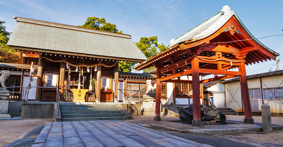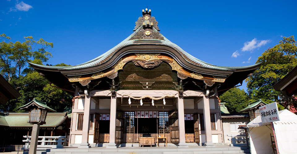 “関の氏神様”として地元の人々に親しまれている古社。正面石段下にどっしりと構える大鳥居は、御影石製の鳥居としては日本最大級とされています。下関といえばフグが有名で(下関では縁起を担いでフグのことをフク[=福]と呼びます)、亀山八幡宮には地元有志により建立された「ふくの像」という銅像があります。フク漁の解禁に合わせて、毎年9月29日には銅像前で、航海安全や豊漁、商売繁盛を祈願するふく祭りが執り行われます。また、毎月29日や2月9日(29[フク]にまつわる限定日)は「ふく御朱印」の授与も。境内には、林芙美子文学碑や亀山砲台跡、伊藤博文と梅子夫人が出会ったお亀茶屋跡など多くの史跡が残っています。