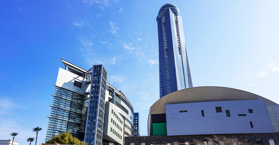 平成8(1996)年に誕生した全長153mの関門海峡のランドマークタワーで、3層からなる球形の総ガラス張り展望室は当時としては世界初。地上143mの展望室最上階からは、昼は関門海峡や瀬戸内海、日本海、下関の町並みなど360度の大パノラマを、夕方は響灘に沈むサンセットを、夜はきらめくような美しい夜景を観賞できます。クリスマスやバレンタインには特別イベントが行われることも。海峡ゆめタワーも季節や曜日によって色を変えるライトアップを実施し、行き交う人々の目を楽しませます。2020年2月には併設の海峡メッセ下関にしゃぶしゃぶと瓦そばを味わえる和風レストラン「茶寮 福の花」がオープンしました。
