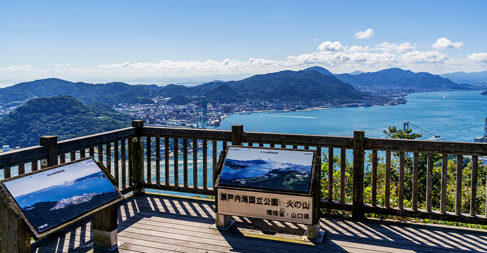山頂に敵の襲来を知らせる狼煙台が設けられていたことが名称の由来。明治23(1890)年には山頂に砲台が置かれ、貴重な軍事拠点としての役割を持ち、第二次世界大戦後まで入山が禁じられていました。現在も石造りやレンガ造りの弾薬庫が残されていますが、一帯は公園として整備されており、山頂付近の展望台は、関門海峡や関門橋、北九州方面まで望める眺望スポットとして知られています。山頂へのアプローチは、眼下の景色を楽しめるロープウェイ、通行無料のパークウェイ、遊歩道の3つのルートを完備。桜とツツジの名所として、市民や観光客の憩いの場となっています。
