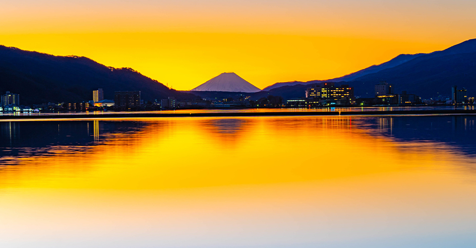 周囲約16km、長野県のほぼ中央に位置する信州一大きな湖・諏訪湖。整備された湖畔では散策やサイクリング、遊覧船やボートなどのアクティビティーなどが楽しめます。例年8月と9月には諏訪湖で花火大会が開催され、多くの観光客でにぎわいます。周辺にある立石公園は、諏訪湖とアルプス連峰の雄大な眺めを一望することができ、夕日や夜景の観賞スポットしても人気です。湖畔には湖に面した客室や温泉が自慢の旅館やホテルが数多くあるので、滞在してゆっくりと観光などが楽しめます。