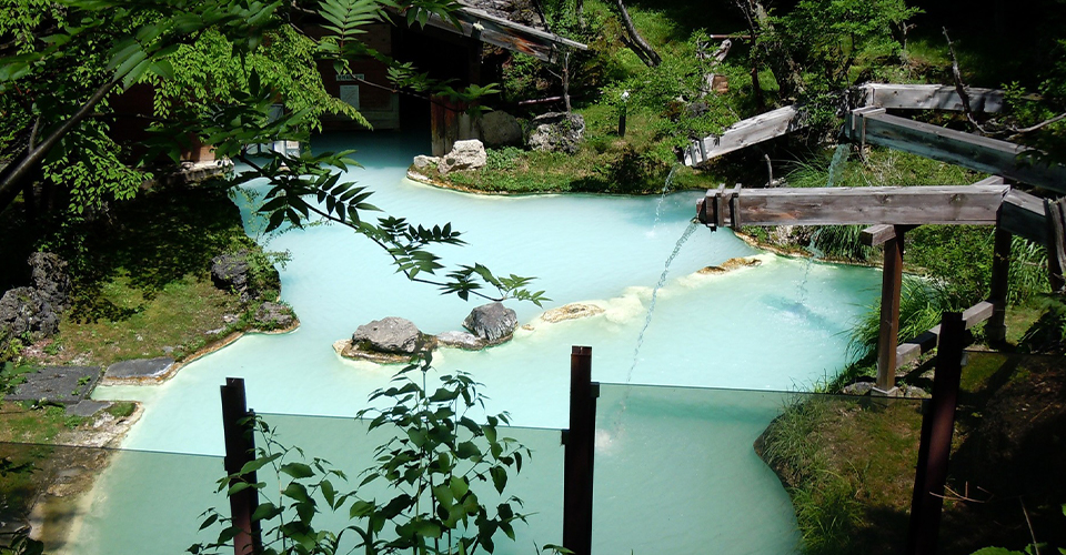 乗鞍岳の東側山腹に湧き出る白骨温泉。源泉かけ流し、乳白色で中性(弱酸性)のお湯は、古来「3日入れば、3年風邪をひかない」とも伝えられる薬用効果の高い温泉として知られています。硫黄と炭酸成分が多く含まれていて、胃腸病をはじめ内臓疾患、神経性ストレスなどにも高い効果があるといわれ、小さな子供からお年寄りまですべての肌に優しいお湯としても親しまれています。10軒ほどある温泉旅館の周辺には土産物屋もあり、蕎麦や漬物、味噌、地酒などの信州名物が揃います。また、豊かな自然にも恵まれており、春は山桜、夏は深緑、秋は紅葉、冬は雪景色と四季によって趣が異なる風景を堪能できるので、季節を変えて何度も訪れてみたいところです。