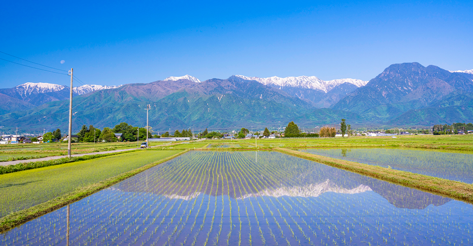 北アルプス山麓に広がる美しい水と自然に恵まれた、のどかな田園地帯です。日本有数のわさびの生産地としても知られ、「大王わさび農場」では栽培方法を見学できるほか、ソフトクリームやコロッケなど、わさびを使用したグルメに出会えます。また、「安曇野ワイナリー」では広大なぶどう畑やワインセラーを見学したり、ワインの試飲も楽しめます。安曇野ならではのお土産を探すなら「安曇野スイス村」がおすすめです。このほか、パワースポットの穂高神社や安曇野ちひろ美術館など見どころも満載です。湧水に育まれた新鮮野菜を使用したこだわりのレストランやカフェも点在しているので、お気に入りの観光地やグルメを探してみてはいかがでしょうか。
