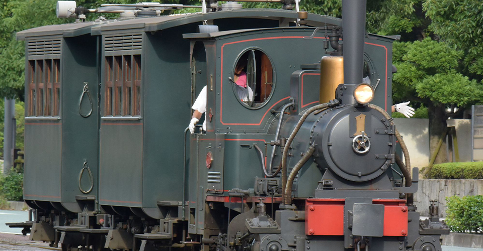 松山を訪ねたら、ぜひ乗ってみたいのが「坊ちゃん列車」です。夏目漱石の小説の代表作『坊ちゃん』にも登場するこの列車は、伊予鉄道が明治時代に走らせていた蒸気機関車がモデル。列車の電化により一時は路線から消えてしまったものの、ディーゼルエンジンに変更して2001年に現在の形で復元されました。姿は初代と変わりませんが、煙突から出る煙は環境に配慮して蒸気を煙に見立てたもの。運行は土・日・祝日のみの本数限定で松山市駅と道後温泉間、古町と道後温泉間の2系統。乗車券は一律1300円で、乗車時に車掌にお渡しください。松山市駅前には「坊ちゃん列車ミュージアム」があり、第1号機関車のレプリカや部品類の展示、お土産用のオリジナルグッズが当たるガチャガチャなどもあります。