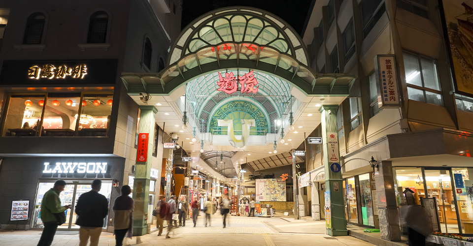 道後ハイカラ通りは日本を代表する古湯・道後温泉のアーケード商店街。伊予鉄道の道後温泉駅から道後温泉本館を結ぶ約250mのL字型の道路に約60件の店が立ち並んでいます。多くの店が明治時代に改築され、門前市のような形で発展してきたため、「明治ロマン」を活性化の目標にしている点が特徴です。松山名物の坊ちゃん団子や一六タルト、じゃこ天、名産のミカンを使ったお菓子類の食べ歩きは観光客の人気の的。鍋焼きうどんや道後ビールが味わえるレストランやカフェも魅力です。お土産には今治タオル、伊予漆器、砥部焼きなどがおすすめ。多くの店は22:00まで営業しているので、温泉につかった後は浴衣姿でハイカラ通りをそぞろ歩いてみてはいかがですか。