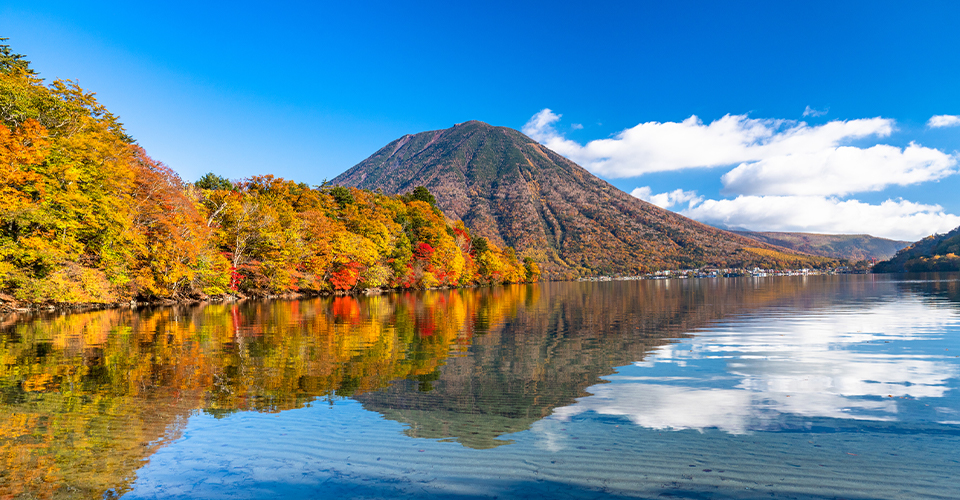 約2万年前、男体山の噴火でせき止められてできたといわれる周囲約25㎞、最大水深約163mの湖。自然豊かで美しい湖畔には、明治中期から昭和初期にかけて欧米各国の大使館や外国人別荘が建てられ、避暑地として発展しました。現在もクラシックホテルの伝統を受け継ぐ「中禅寺金谷ホテル」など、リゾート気分を味わえるホテルが多くあります。湖では名所をめぐる遊覧船やカヤック体験も楽しめ、湖面から見る新緑、紅葉など四季折々の景色は格別です。晴れた日は中禅寺湖スカイラインの終点にある「半月山展望台」がおすすめ。男体山を背に広がる中禅寺湖、遠くに戦場ヶ原や竜頭の滝を一望できます。