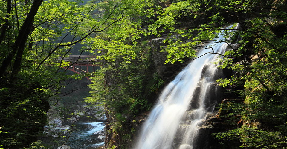 鬼怒川温泉と川治温泉の間に約3km続く、まるで龍が舞うような美しい峡谷。約2200万年前の海底火山の活動によって流出した火山岩や火山灰が鬼怒川の急流に浸食されて形成されたといわれています。さわやかな新緑の季節はもちろん、紅葉が見頃を迎える10月下旬~11月中旬には、多くの観光客やハイカーが訪れます。峡谷沿いには遊歩道が整備され、見どころをめぐりながらのハイキングも楽しめます。歩程によって4つのコースがありますが、まずは五龍王神社から白岩までを往復する、片道約1時間・約2㎞のショートコースがおすすめ。「虹見の滝」や断崖絶壁を一望できる「むささび橋」などの写真スポットも点在しています。