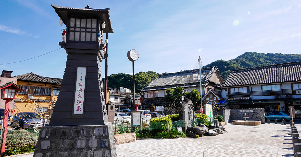 日奈久温泉は熊本県最古の温泉地と言われています。効能の良さから湯治に訪れる人も多く、薩摩藩主の島津侯もよく利用していたそう。温泉街の中でも目を引く「金波楼」は創業100年以上の歴史ある旅館で、三層の木造建築が国の登録有形文化財に認定されています。毎年冬場は地域の特産品である晩白柚を浮かべたお風呂、春先は甘夏みかんを浮かべたお風呂などの名物湯が人気。明治元年に建てられた警察署の分署を改築した「松の湯」は大人200円、子ども100円で入浴できます(2020年4月現在)。公衆浴場でありながら貸切湯があり、壁にはヒノキが、柱は熊本城にも使用されたクリの木が使われており、日帰りで気軽に贅沢な入浴が楽しめる温泉施設です。