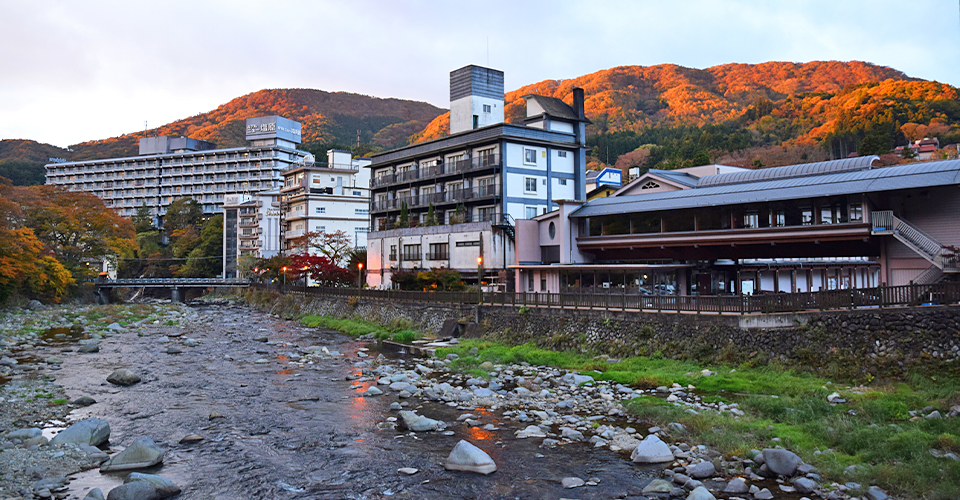 開湯約1200年の歴史を誇る塩原温泉郷。宿数は60軒ほどですが、源泉数はなんと150以上!単純泉や酸性泉、炭酸水素塩泉など、ひとつの温泉街でさまざまな泉質のお風呂に入ることができます。周辺には塩原渓谷があり、四季折々の自然が楽しめるのも魅力の一つ。春から初夏にかけてヤシオツツジの桃色の花が美しく、夏は新緑、秋は紅葉が山を彩ります。冬には雪に覆われた森をスノーシューで散策できます。日帰りで塩原温泉を訪れるなら、「湯っ歩の里」へどうぞ。全長60mにおよぶ日本最大級の足湯があります。家族や友達とおしゃべりしながらゆったりリラックスしませんか。