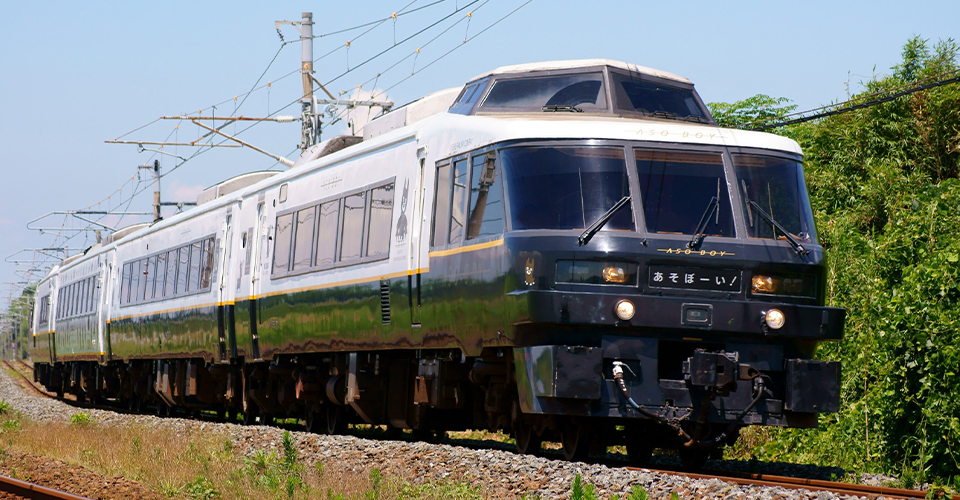 乗ること自体が楽しみのひとつとなる観光列車。JR九州で運行している特急「あそぼーい!」もそのひとつです。熊本駅から阿蘇駅までの阿蘇への旅を、車両や車内に描かれたかわいい犬のキャラクター・くろちゃんが楽しく演出してくれます。最大の魅力は車両両端にある全面展望パノラマシート。流れる景色の中、阿蘇の絶景を存分に堪能できます。他にも小さなお子さまも楽しめるファミリー車両もあります。木のボールプールや車内販売が楽しめる「くろカフェ」、くろちゃんグッズの展示など、移動時間も退屈しません。阿蘇に着いたら、車窓から眺めていた阿蘇山へ行くのもおすすめです。