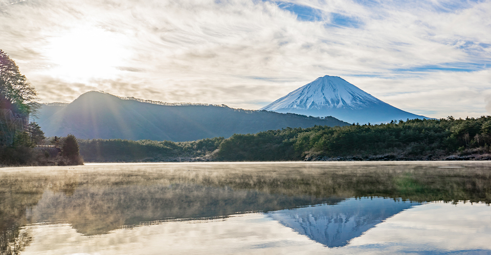 世界文化遺産「富士山ー信仰の対象と芸術の源泉」の構成資産であり、人気のリゾート地として知られる富士五湖。中でも面積が最も小さい精進湖は、富士山と青木ヶ原樹海が調和する美しい風景が魅力です。富士山が大室山を抱っこしているように見える「子抱き富士」が有名で、写真家からの人気も高いスポットといえます。湖畔にはコテージやバンガローなど充実の設備をもつ「精進湖キャンピングコテージ」があり、手軽にキャンプやグランピング、バーベキューを楽しむことも可能。富士山の絶景とともにアウトドアライフを楽しめます。精進マウントホテルや精進レークホテルなど、ロケーション抜群のホテルでの滞在もおすすめです。