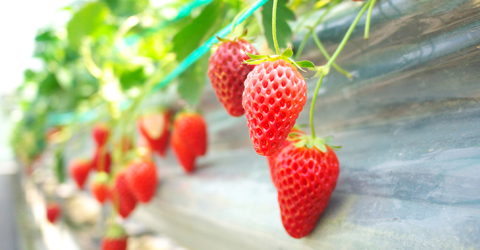 春はイチゴ、夏はメロン、秋から冬はミカンと、一年を通して季節のフルーツ狩りができる観光農園です。水がきれいで日当たりのよい伊豆地方は果樹栽培の適地。園内で育てたフルーツはいずれも色つやが良く風味も豊かです。イチゴはかがまなくても摘み取れるように高設栽培にするなど、お客目線での心配りもうれしいですね。ショップには園内のフルーツを使ったバームクーヘンやジュース、ジャムなどがずらり。レストランではシラスや金目鯛など海の幸も食べられるので、「伊豆の食」をまるごと楽しめる施設といえるでしょう。