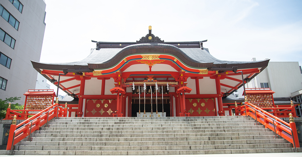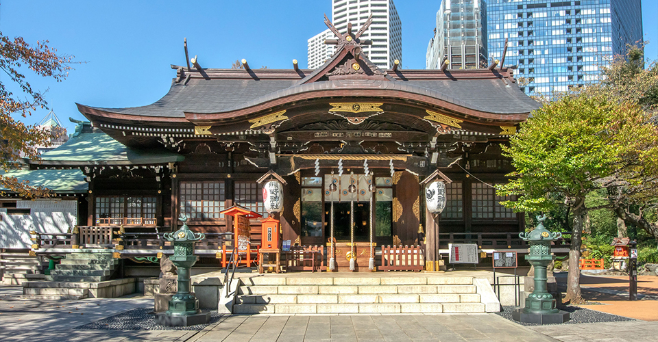 新宿の街の中心にあることから「街の守り神」とされ、本殿には商売繁盛の神、武神、食物の神の三柱が祀られる神社です。開運出世、財福招来のご利益があります。境内にある「威徳稲荷神社」は夫婦和合と恋愛成就にご利益があります。御朱印は通常のもの、11月の酉の市、5月の例大祭の3種類があり、いずれも社務所で受け付けています。毎週日曜には「青空骨董市」が開催され、古道具や着物などの様々な掘り出し物が見つかります。