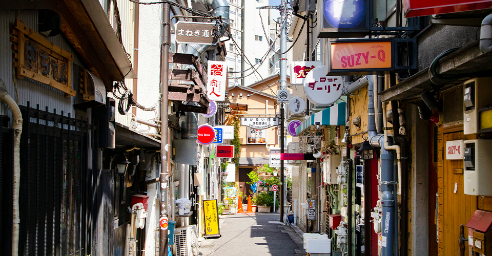 かつては「新宿マーケット」と呼ばれた闇市で、1958年ごろからバーが密集する飲食店街「新宿ゴールデン街」となりました。多くの文化人が常連客として訪れるほか、映画や小説の舞台にもなっています。「新宿ゴールデン街劇場」では演劇やお笑いライブ、落語などが間近で楽しめます。客引き行為防止に関する条例の制定によって治安は良くなりつつあります。お店の開いていない日中は、一人でも安心して昔ながらの木造の長屋が残る街並みを散策できます。