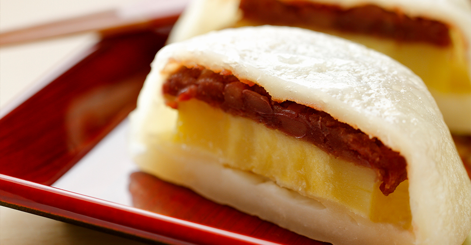 からいも(さつまいも)と小豆あんを薄い生地で包んだ、ご当地の一般家庭でも手作りされる郷土菓子。「簡単でいきなりの来客でもすぐ用意できる、生芋(生き成り)を使う」ことが名前の由来といわれます。くま純のいきなり団子は手作業でカットしたいもとあんを、独自の皮でひとつずつ丁寧にくるんで蒸し上げた一品です。冷凍すれば約2カ月保存ができるので、もちもちの歯触りと素朴な甘みを取り寄せやお土産でもお楽しみいただけます。