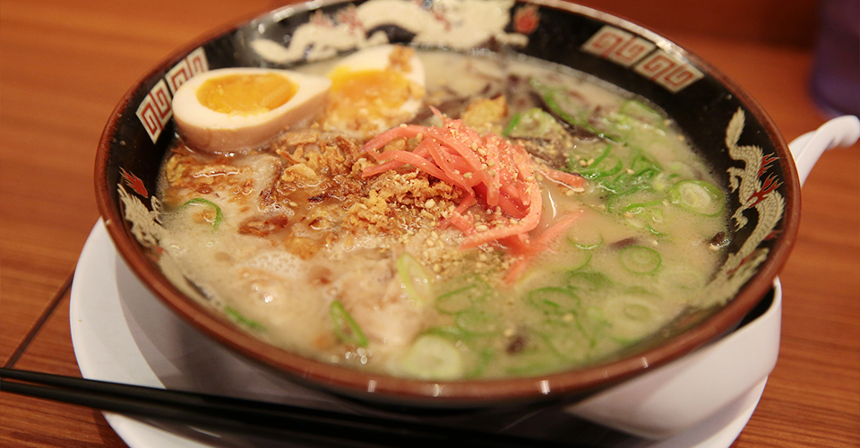 九州のご当地ラーメンで見逃せないのが鹿児島ラーメン。なかでも「豚とろ本店」は鹿児島を代表するラーメン店のひとつで、豚一頭からわずかしかとれない首周りの肉(トントロ)をやわらかく煮込んだチャーシューはトロリとした食感が絶妙で一度食べたらやみつき。豚骨をベースに鳥ガラを加えたスープは深いコクがあり中太麺によくからみます。ラーメンは味の濃さ、麺のかたさなど好みに応じてくれます。チャーシューダレに漬け込んだ半熟卵をトッピングするとさらに美味です。