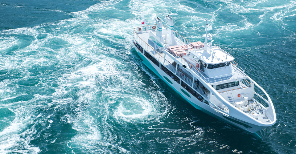 渦潮は、激しい潮流の発生でできる自然現象です。直径20mにも達する鳴門の渦潮の大きさは、世界一と言われています。最も迫力のある渦潮が発生する時間帯は、潮見表で確認できます。渦潮を近くで楽しみたい方には、鳴門駅から車で約15分のところにある鳴門観光汽船の乗場から「うずしお観潮船」に乗るのがおすすめです。予約不要の大型観潮船と、要予約の水中展望室付き小型水中観潮船の2種類があり、料金はそれぞれ1,800円、2,400円(大人/税込)です。